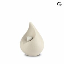 De vorm van deze urn symboliseert een traan met in het midden een subtiel hartje dat staat voor eeuwige liefde. Dankzij de tijdloze en verfijnde vormgeving past de urn in iedere omgeving en straalt deze rust en verbondenheid uit. De kleurcombinatie lichtbeige met wit komt erg mooi tot zijn recht bij deze tijdloze moderne mini urn.