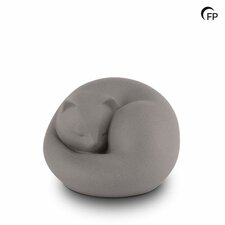 Deze stijlvolle dierenurn is onderdeel van onze unieke collectie met porseleinen urnen. Deze urnen zijn geproduceerd door de ambachtelijke vakmensen van Baccini Cremation Partner (B-CP) uit Italië. B-CP levert hoogwaardige, Italiaanse producten. De urn is ‘made in Italy’, wat staat voor aandacht voor detail en zorg voor producten van hoge kwaliteit. Duurzaamheid speelt een belangrijke rol bij B-CP. Belangrijk voor u is dat deze slapende kat een inhoud heeft van 1,0 Liter. Hier zou dus ruimschoots alle as van uw overleden kat/poes in geplaatst kunnen worden. Bovendien zou u er nog wat haren of een lievelingsspeeltje van uw lieve kat in kunnen bewaren.