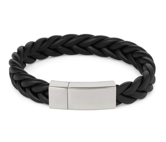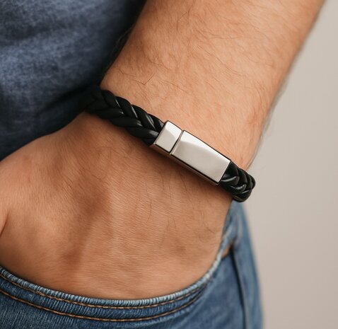 As armband zwart gevlochten met zilverkleurig (opruiming)