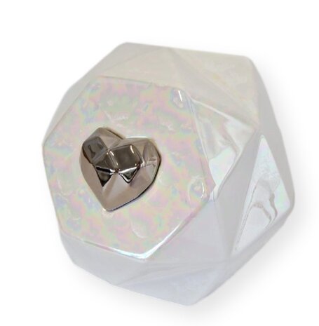 Keramische urn medium wit parelmoer met zilverkleurig hart (2,0L)