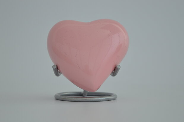 is gemaakt van metaal met een speciale laklaag. De laklaag zorgt er voor dat de urn zijn glans laag heeft en langdurig beschermt is, waardoor deze lang meegaat. De licht roze hartvormige urn is eenvoudig te vullen door de opening aan de onderkant. Met een formaat van ca. 7,5 bij 4,5 cm en een inhoud van 0,08 liter is het een formaat dat je tevens makkelijk kunt verplaatsen. De vorm van de urn geeft het een liefelijke uitstraling en past in vrijwel elk interieur.