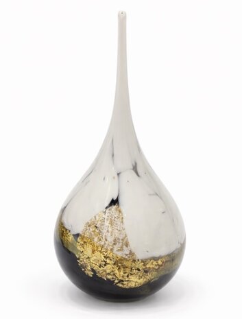 Deze glazen mini urn Elegance, doet zijn naam eer aan. De prachtige kleurstelling, zwart, wit, zachtgroen en wat goudkleurige accenten maakt van dit urntje een sieraad om hiermee diegene die u zo mist, te eren. Iedere dag zult u er met veel liefde naar kijken en in gedachten teruggaan in de mooie tijd die u samen hebt gehad.