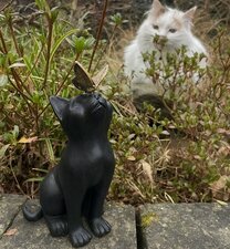 De kat met vlinder is een prachtige urn en gedenkbeeldje tegelijkertijd. Als uw kat gecremeerd is, kunt u een deel van de as in het katje bewaren. Is uw kat begraven? Dan kan dit een mooi gedenkbeeldje zijn om uw kat ook na zijn of haar overlijden te blijven eren. De katten urn is circa 16cm hoog. Met vlinder is het geheel 19cm hoog.